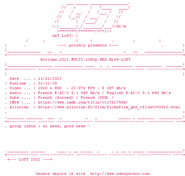 Voir le nfo de la release Bottoms.2023.MULTI.1080p.WEB.H264-LOST