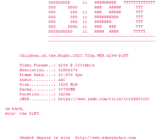 Voir le nfo de la release Children.Of.The.Night.2023.720p.WEB.H264-DiRT