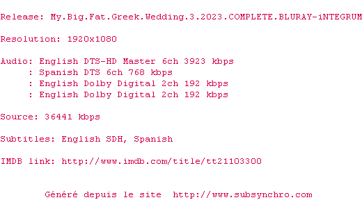 Voir le nfo de la release My.Big.Fat.Greek.Wedding.3.2023.MULTi.COMPLETE.BLURAY-GMA