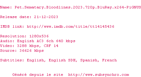 Voir le nfo de la release Pet.Sematary.Bloodlines.2023.720p.BluRay.x264-PiGNUS
