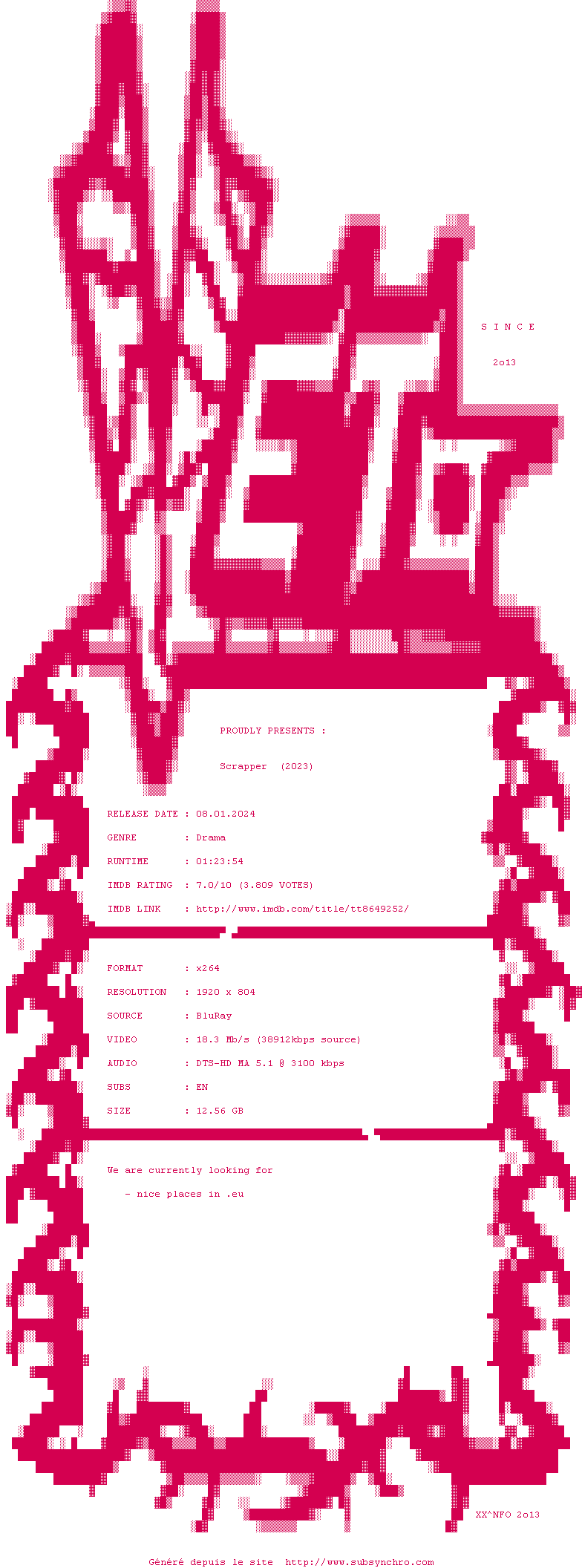 Voir le nfo de la release Scrapper.2023.1080p.BluRay.x264-VETO