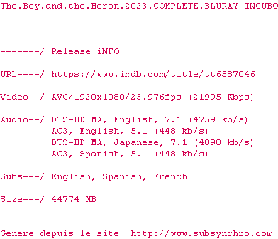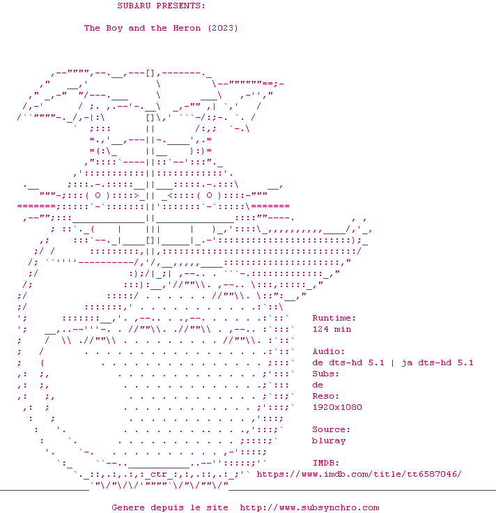 Voir le nfo de la release The.Boy.And.The.Heron.2023.ANiME.MULTi.COMPLETE.BLURAY-SUBARU