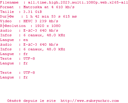 Voir le nfo de la release All.Time.High.2023.MULTI.1080p.WEB.x265-ALL