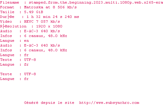 Voir le nfo de la release Stamped.From.The.Beginning.2023.MULTi.1080p.WEB.x265-ERA