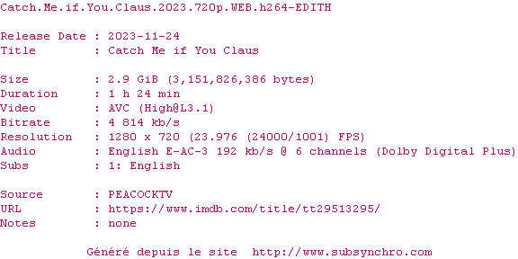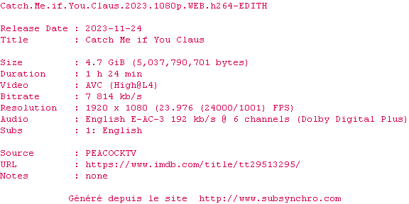 Voir le nfo de la release Catch.Me.If.You.Claus.2023.1080p.WEB.H264-EDITH