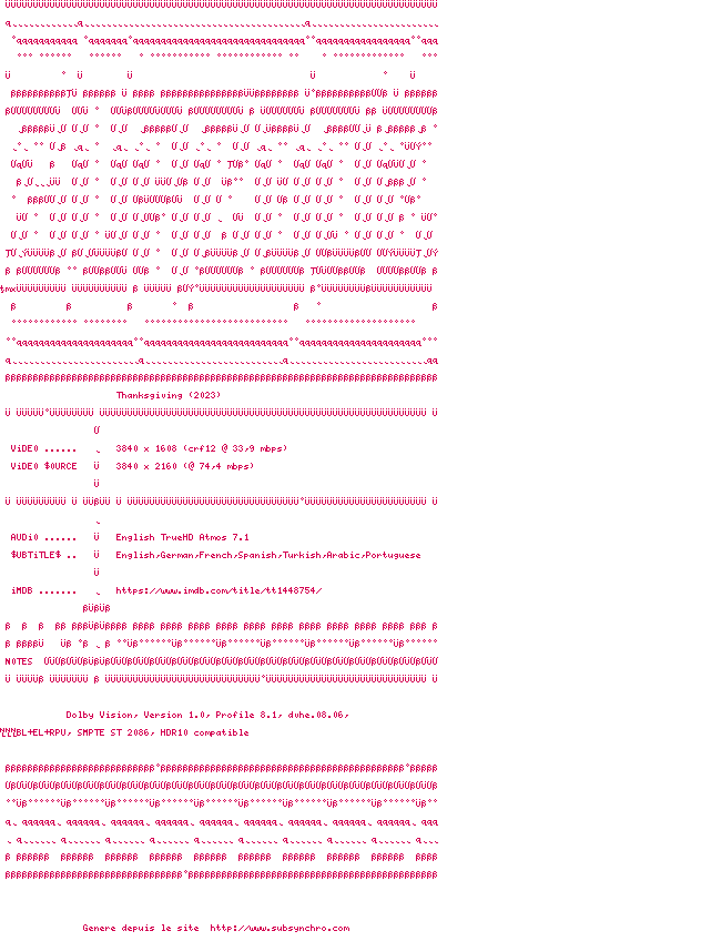 Voir le nfo de la release Thanksgiving.2023.MULTI.HDR.2160p.WEB.H265-LOST