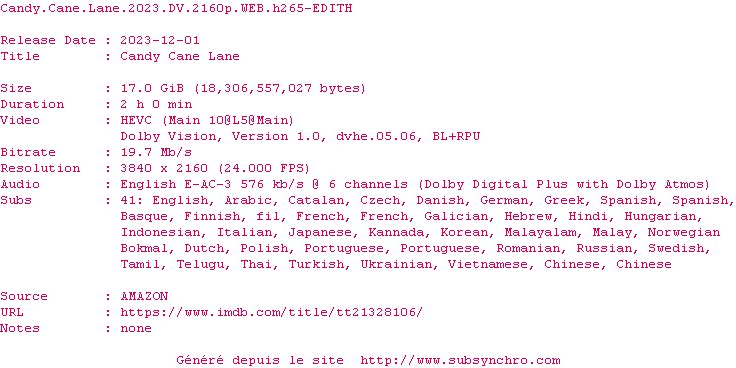 Voir le nfo de la release Candy.Cane.Lane.2023.DV.2160p.WEB.H265-EDITH