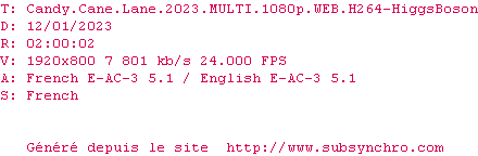 Voir le nfo de la release Candy.Cane.Lane.2023.MULTI.1080p.WEB.H264-HiggsBoson