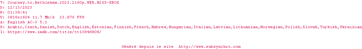 Voir le nfo de la release Journey.To.Bethlehem.2023.2160p.WEB.H265-KBOX