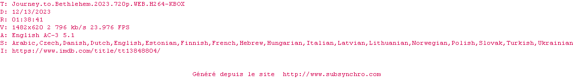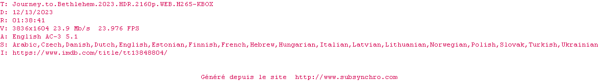 Voir le nfo de la release Journey.To.Bethlehem.2023.HDR.2160p.WEB.H265-KBOX
