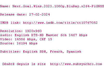 Voir le nfo de la release Next.Goal.Wins.2023.1080p.BluRay.x264-PiGNUS