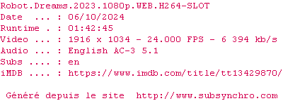 | KUCHU | Robot.Dreams.2023.1080p.WEB-DL.AAC2.0.H.264-KUCHU OpenSubtitles | 0 fichier | |||