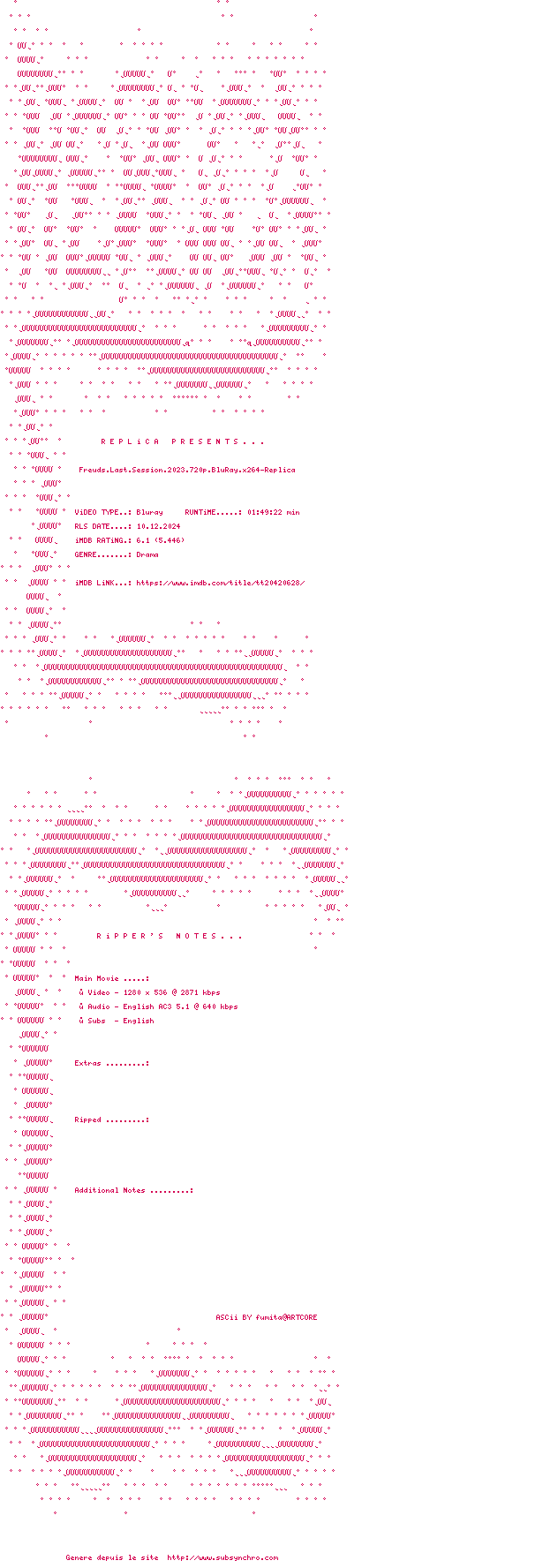 Voir le nfo de la release Freuds.Last.Session.2023.1080p.BluRay.x264-Replica