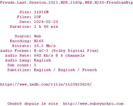 Voir le nfo de la release Freuds.Last.Session.2023.2160p.WEB.H265-FreudianNip