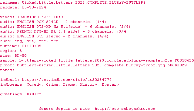 Scandaleusement vôtre (Wicked Little Letters) , realise en 2023