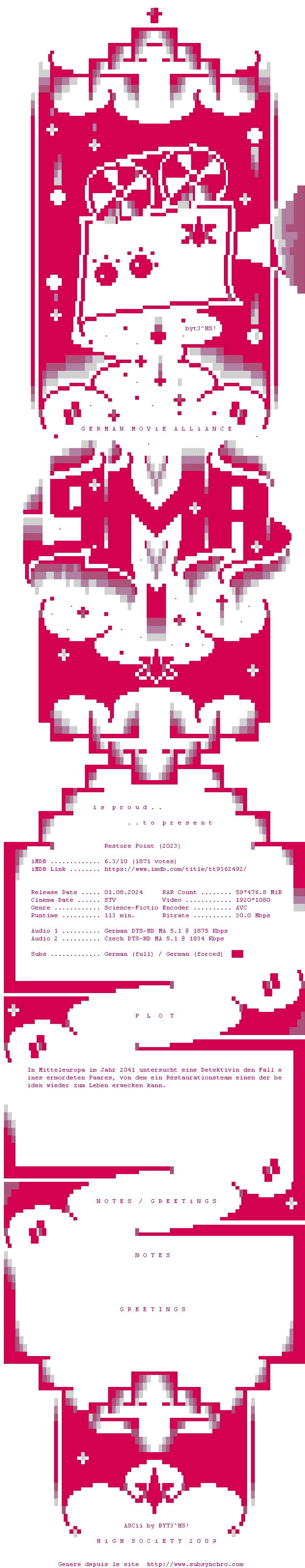 Voir le nfo de la release Restore.Point.2023.German.DL.1080p.BluRay.AVC-GMA