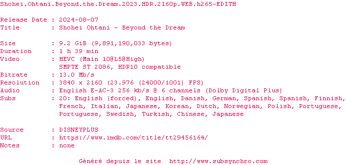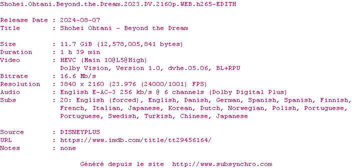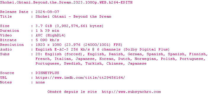 Shohei Ohtani - Au-delàdu rêve (Shohei Ohtani: Beyond the Dream) , realise en 2023