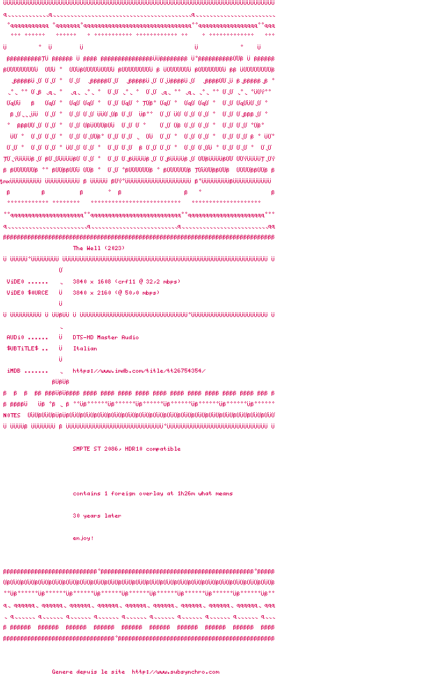 Voir le nfo de la release The.Well.2023.iNTERNAL.2160p.UHD.BluRay.H265-GAZPROM