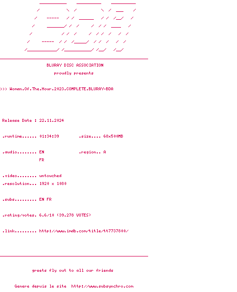 Voir le nfo de la release Woman.Of.The.Hour.2023.BDRip.x264-VETO