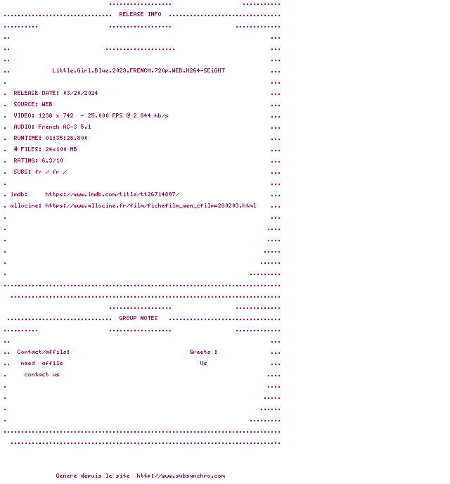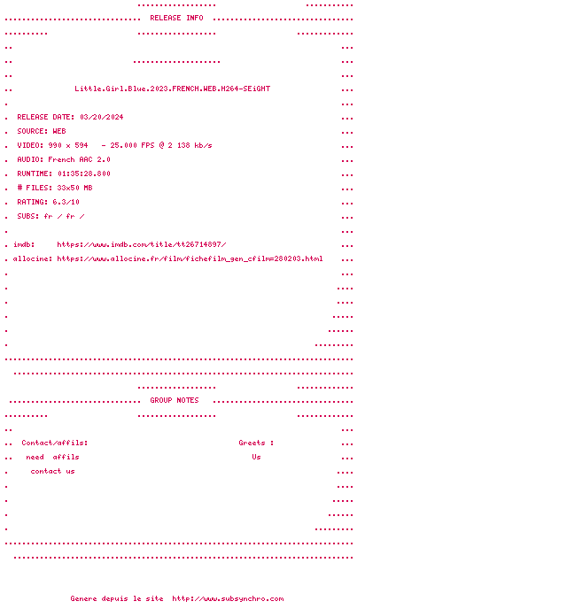 Voir le nfo de la release Little.Girl.Blue.2023.FRENCH.1080p.WEB.H264-SEiGHT