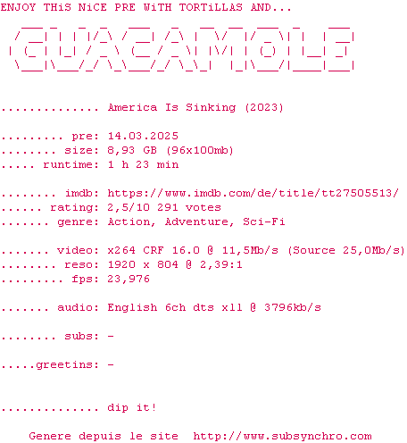 Voir le nfo de la release America.Is.Sinking.2023.BDRiP.x264-GUACAMOLE