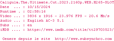 Voir le nfo de la release Caligula.The.Ultimate.Cut.2023.2160p.WEB.H265-SLOT