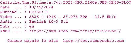 Voir le nfo de la release Caligula.The.Ultimate.Cut.2023.HDR.2160p.WEB.H265-SLOT