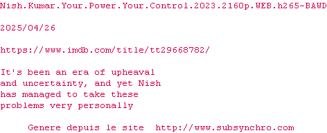 Voir le nfo de la release Nish.Kumar.Your.Power.Your.Control.2023.2160p.WEB.H265-BAWD