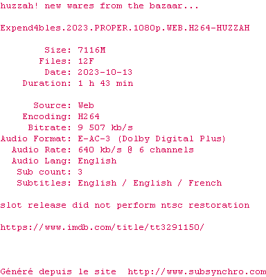 NFO de Expend4bles.2023.PROPER.1080p.WEB.H264-HUZZAH