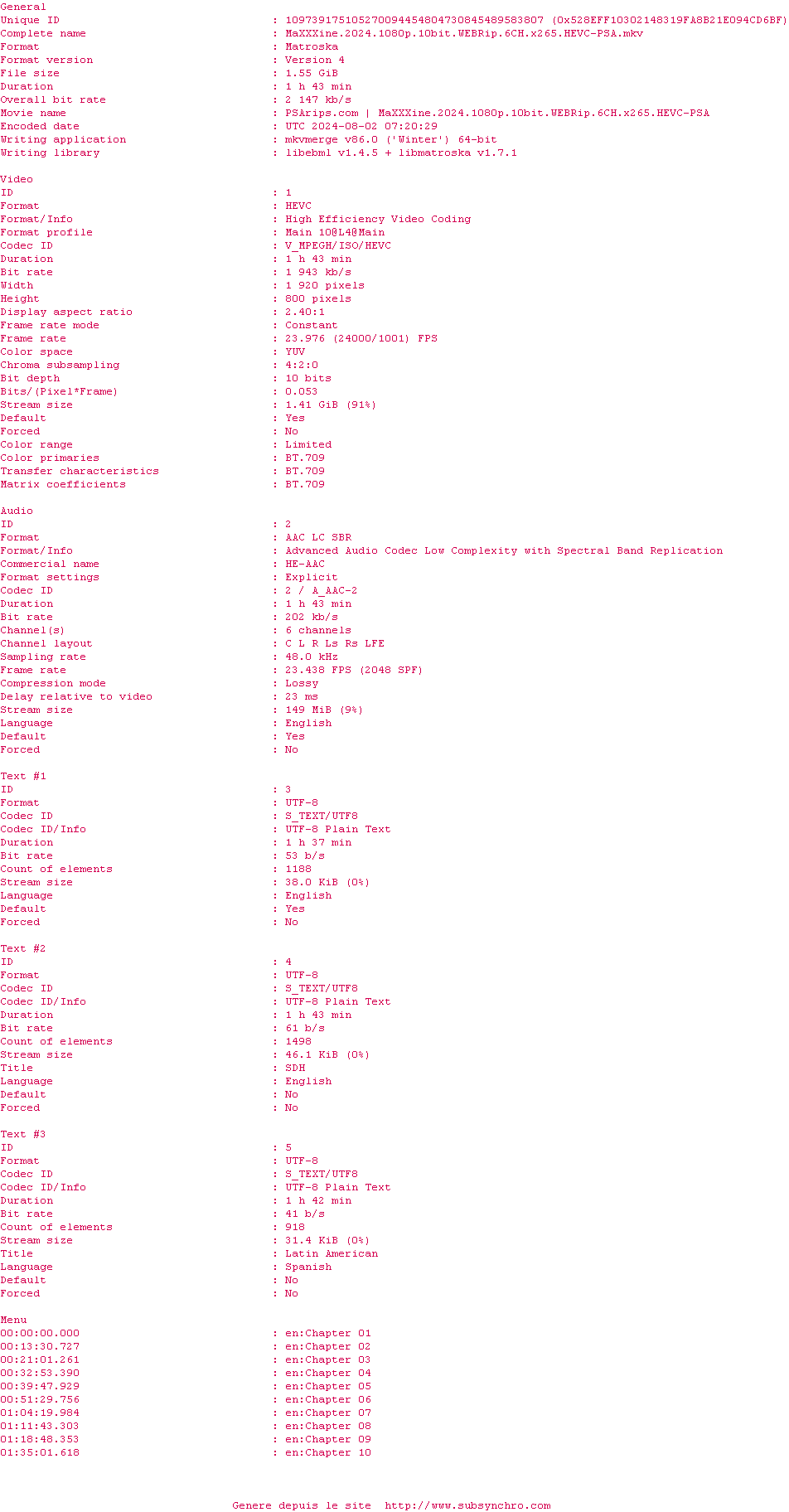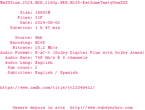 Voir le nfo de la release MaXXXine.2024.HDR.2160p.WEB.H265-EatSomeTastySnaXXX