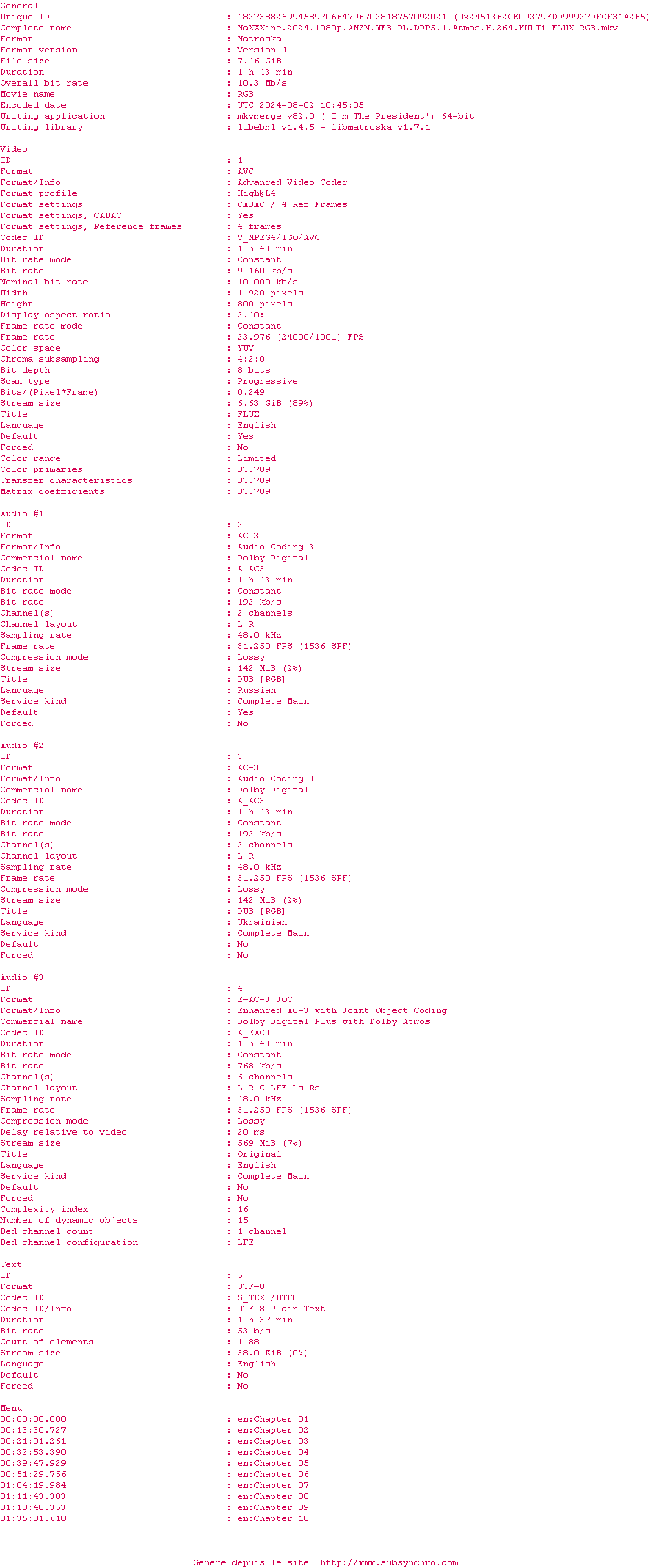 Voir le nfo de la release MaXXXine.2024.1080p.AMZN.WEB-DL.DDP5.1.Atmos.H.264.MULTi-FLUX-RGB