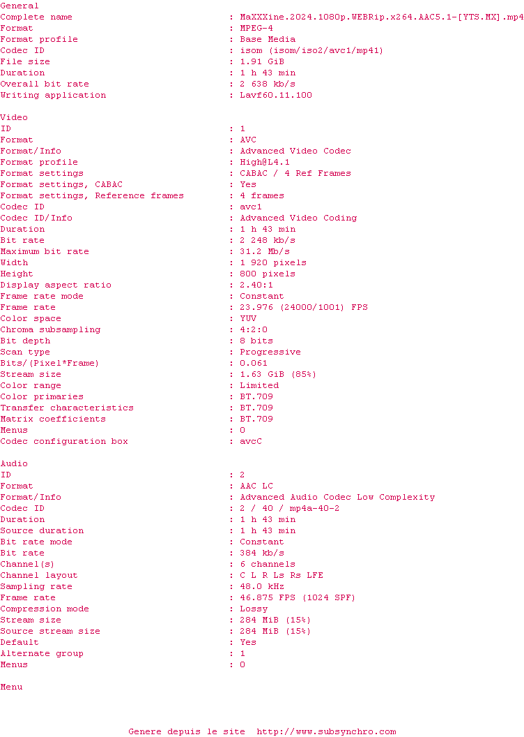 Voir le nfo de la release MaXXXine.2024.1080p.WEBRip.x264.AAC5.1-YTS