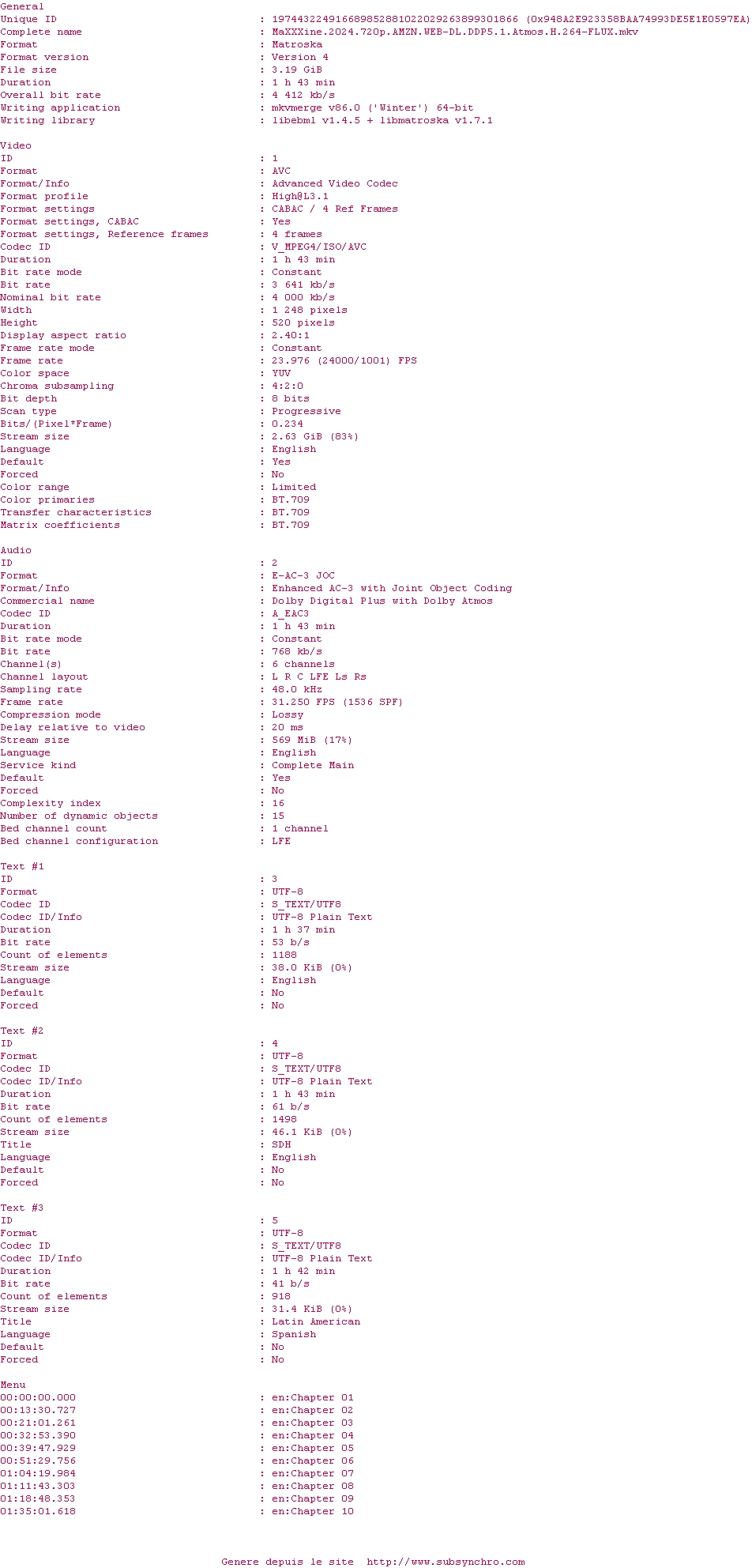 Voir le nfo de la release MaXXXine.2024.720p.AMZN.WEB-DL.DDP5.1.Atmos.H.264-FLUX