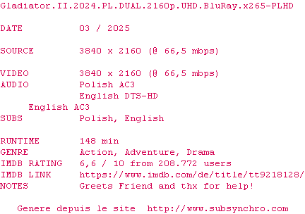 Le commentaire de Artaudlemomo Commente par Artaudlemomo (1), Le Samedi 11 Janvier 2025 à 10h37 Pas la catastrophe annoncée. Toujours le savoir faire de Ridley Scott. Des lourdeurs mais le film se regarde plutôt bien. Les requins dans le colisée il fallait oser ? 6 / 10 0 0