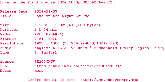 Voir le nfo de la release Love.On.The.Right.Course.2024.1080p.WEB.H264-EDITH