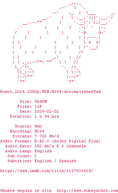 Voir le nfo de la release Bosco.2024.1080p.WEB.H264-AccomplishedYak