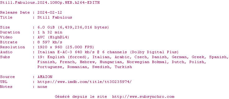 Voir le nfo de la release Still.Fabulous.2024.720p.WEB.H264-EDITH