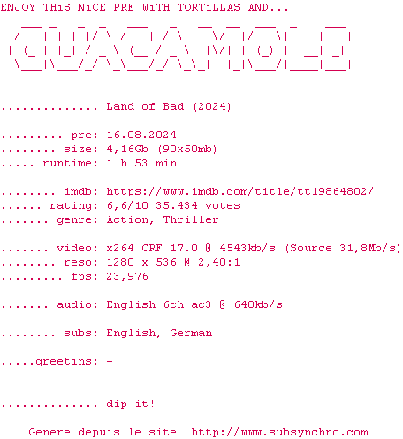 Le commentaire de ahuribarbu Commente par ahuribarbu (286), Le Vendredi 17 Octobre 2025 à 19h15 En général, j'ai un peu de mal avec les films australiens. Sur le coup, celui-ci m'a bien plu. Toujours un plaisir de croiser Russel Crowe, le film ne manque pas de bons moments et réserve quelques surprises. 9 / 10 0 0