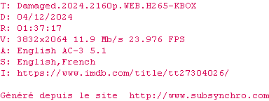 Voir le nfo de la release Damaged.2024.2160p.WEB.H265-KBOX