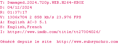 Voir le nfo de la release Damaged.2024.720p.WEB.H264-KBOX