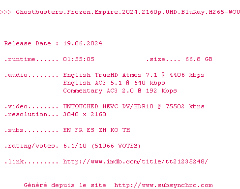 Le commentaire de Jean-Tilapin Commente par Jean-Tilapin (5), Le Lundi 08 Juillet 2024 à 16h27 J'aurais tendance à ne pas être d'accord avec les deux commentaires précédents : je trouve - personnellement - que Ghostbusters devrait justement enfin s'affranchir des deux épisodes des années 80. Sur les trois derniers films, on a sans arrêt des scènes clins d'oeil, hommages, personnages secondaires inutiles, qui plombent le rythme des films et empêchent les nouveaux acteurs de se lancer réellement dans la franchise. C'est particulièrement flagrant pour ce film : le méchant n'apparait que dans les 5 dernières minutes, tout le reste, c'est construction narrative laborieuse et scènes gênantes avec les acteurs précédents. C'est pénible et douloureux à regarder. J'aurais très nettement préféré un film plus simple avec juste la famille du précédent opus plutôt réussi, qui affronte un méchant mieux amené et utilisé, indépendamment des autres films. Un p'tit clin d'oeil vite fait et on se reconcentre sur la trame principale pour faire un film un minimum intéressant. 4 / 10 0 0