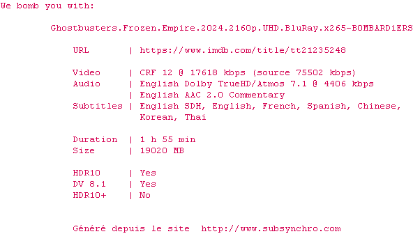 Le commentaire de bitonio6 Commente par bitonio6 (304), Le Dimanche 23 Juin 2024 à 02h44 ça fait vraiment plaisir de revoir tous les acteurs du premier... Un très bon moment, intrigue bien amenée, c'était très sympa. 7 / 10 0 0