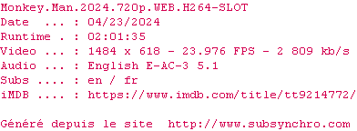 Voir le nfo de la release Monkey.Man.2024.720p.WEB.H264-SLOT