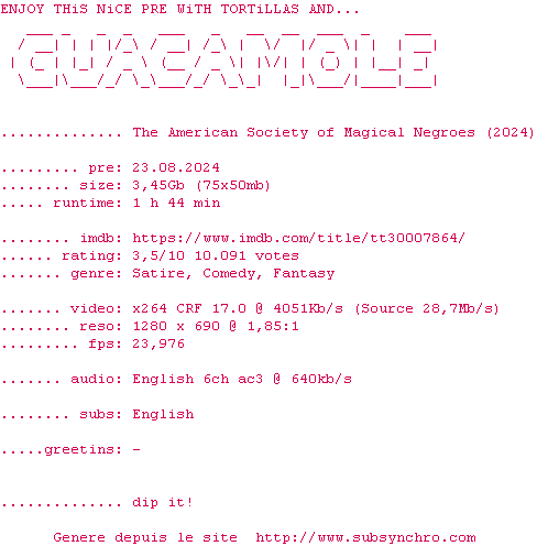 Voir le nfo de la release The.American.Society.Of.Magical.Negroes.2024.2160p.WEB.H265-EDITH