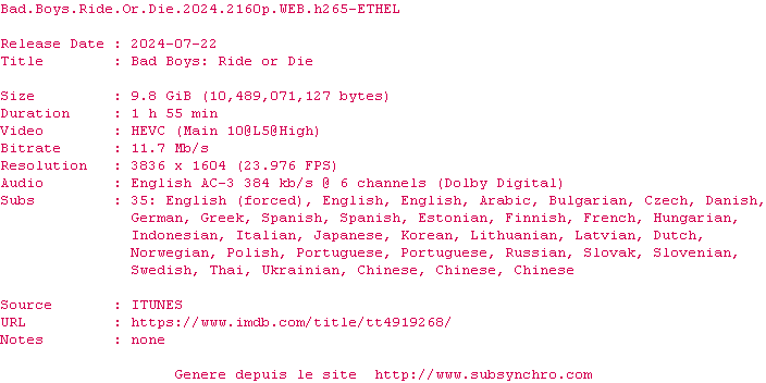 Voir le nfo de la release Bad.Boys.Ride.Or.Die.2024.HDR.2160p.WEB.H265-ETHEL