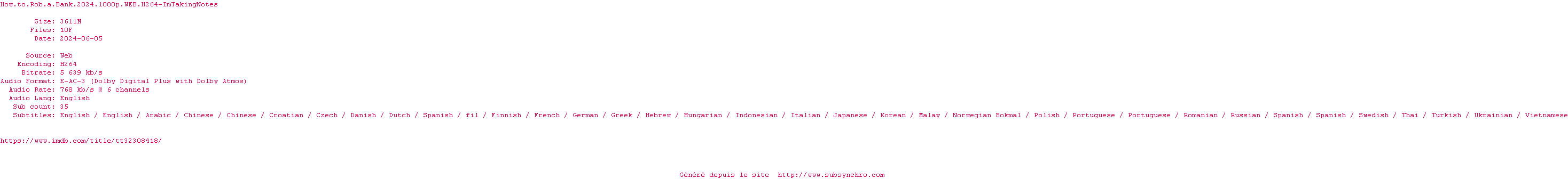 | YTS | How.To.Rob.A.Bank.2024.720p.WEBRip.x264.AAC-YTS OpenSubtitles | 0 fichier |