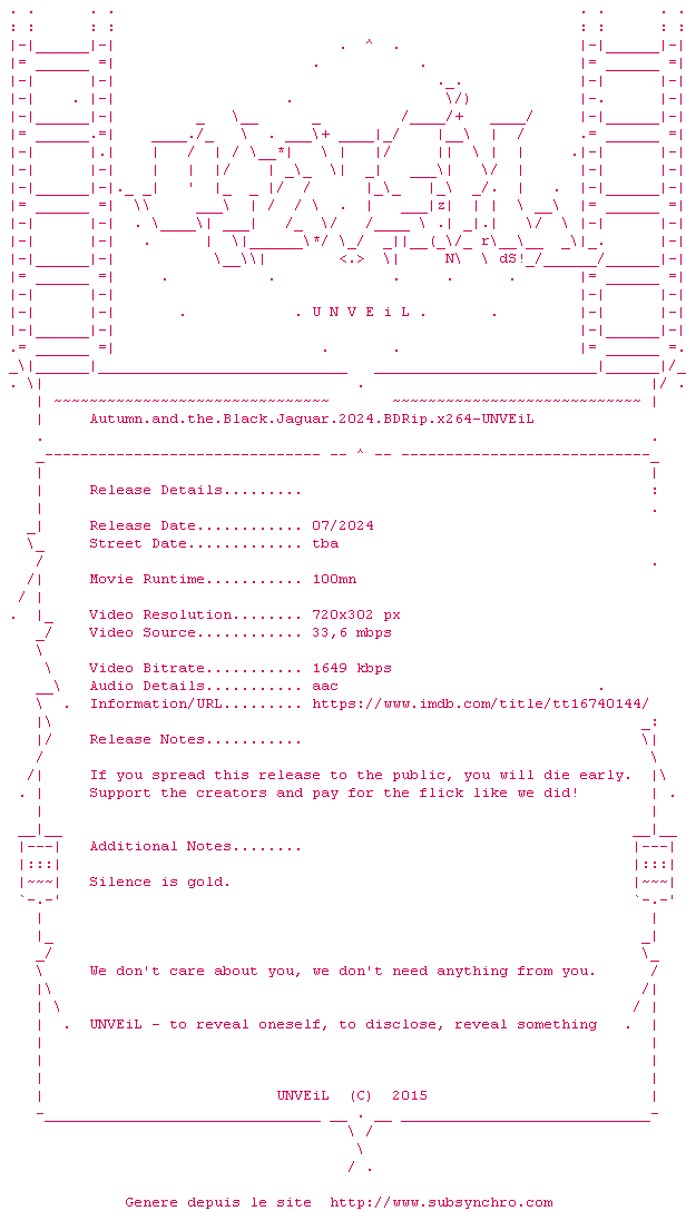 Voir le nfo de la release Autumn.And.The.Black.Jaguar.2024.BDRip.x264-UNVEiL