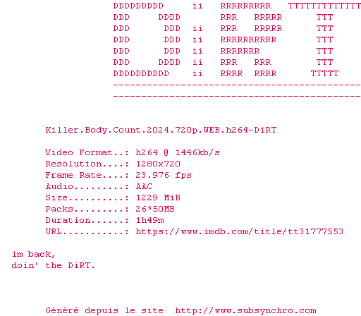 Voir le nfo de la release Killer.Body.Count.2024.720p.WEB.H264-DiRT
