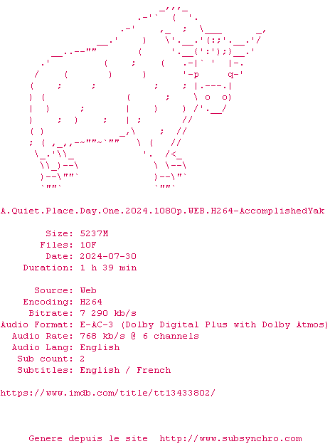 Voir le nfo de la release A.Quiet.Place.Day.One.2024.1080p.WEB.H264-AccomplishedYak