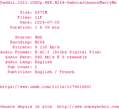 Voir le nfo de la release Daddio.2023.1080p.WEB.H264-DakotaJohnsonMarryMe